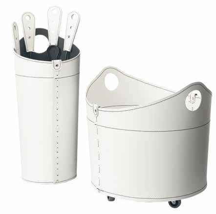 Zostava sa skladá z koženého koša na palivové drevo Cadin a krbového náradia Nilar.